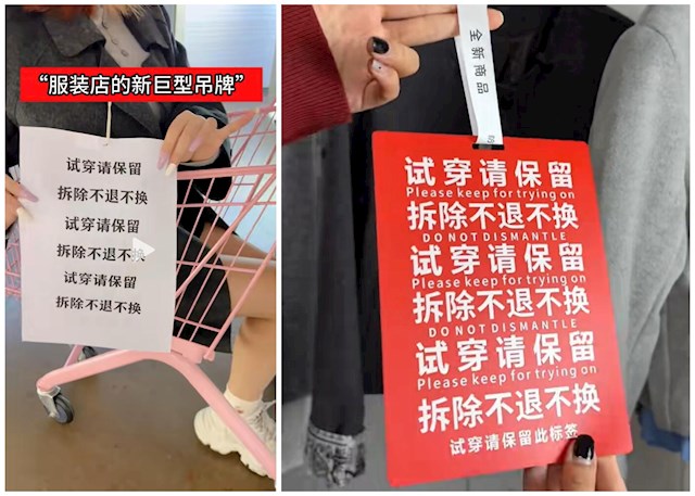 商家反映,长期以来很多服饰退货并非质量问题,而是消费者藏着吊牌穿几天后退货,利用规则“薅羊毛”,设计巨型吊牌实属无奈。